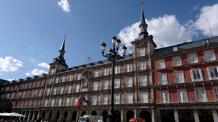 Successivamente ci siamo spostati a piedi verso il Mercato di San Miguel (aperto dom-giov dalle 10:00 alle 24:00 e ven-sab dalle 10:00 all'1:00) per immergerci nei sapori tipici di Madrid. È un luogo in cui si possono assaggiare tutte le specialità locali e non, dalle tapas al baccalà, si possono bere sangria, cerveza o vini particolari. Unica pecca: a volte i prezzi sono molto alti per le quantità che si possono mangiare. Successivamente ci siamo spostati per visitare Plaza Mayor e Puerta del Sol.